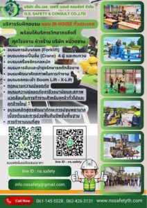 เอ็นเอส เซฟตี้แอนด์คอนซัลท์ บริการรับฝึกอบรมทั่วประเทศ แบบ in-house พร้อมให้บริการทุกโรงงาน ห้างร้าน บริษัท หน่วยงาน เรายินดีพร้อมให้บริการ เพื่อเพิ่มประสิทธิภาพการใช้เครื่องจักร ในการปฏิบัติงานและลดการกระทำที่ไม่ปลอดภัยจากการขับรถยก และหลักสูตรอื่นๆอีกมากมาย โดยวิทยากรมืออาชีพที่มากประสบการณ์พร้อมที่จะให้ความรู้ความปลอดภัยแก่ทุกท่าน 💯👍ที่ต้องการจัดอบรมโดยนายจ้าง รถยก/ปั้นจั่น